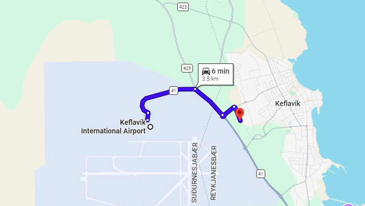 - It will bring you to the nearby car rental area in Keflavík